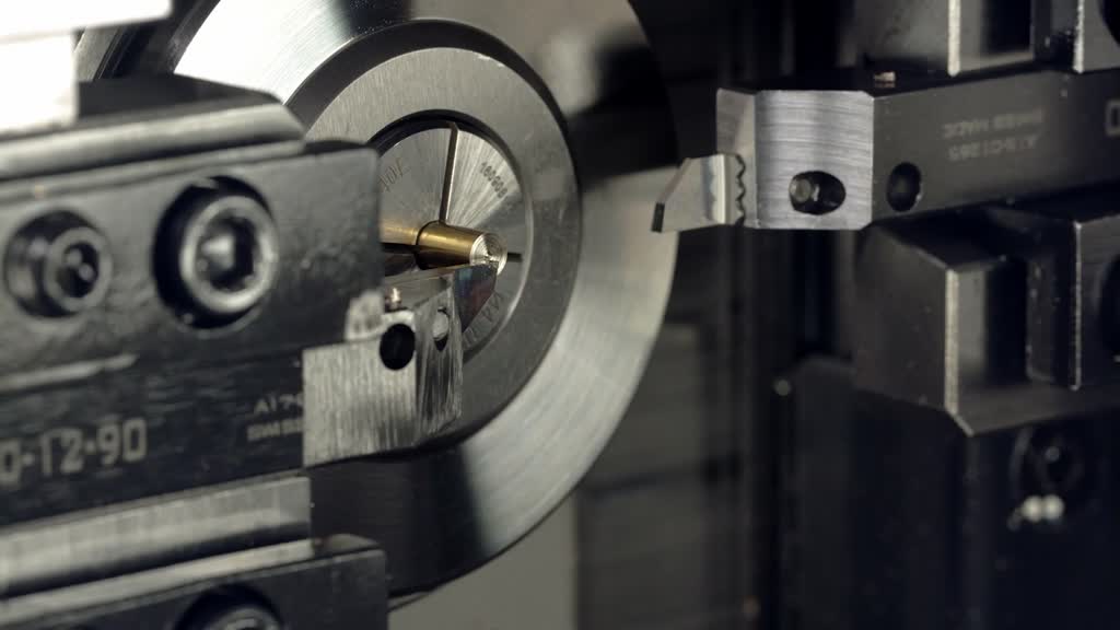 橫向和縱向車削、定心、鑽孔、倒角、分型——完成。墊圈?不,是加速輪的車削坯料。由於精確度只有幾微米,這裡涉及的作業比大家想像的要多。在下一步中,加速輪會開始轉動。之後,它將成為確保午夜準時調校日期的其中一個零件。加速輪是我們獲得專利的 DUW 6101 日期裝置的一部分。